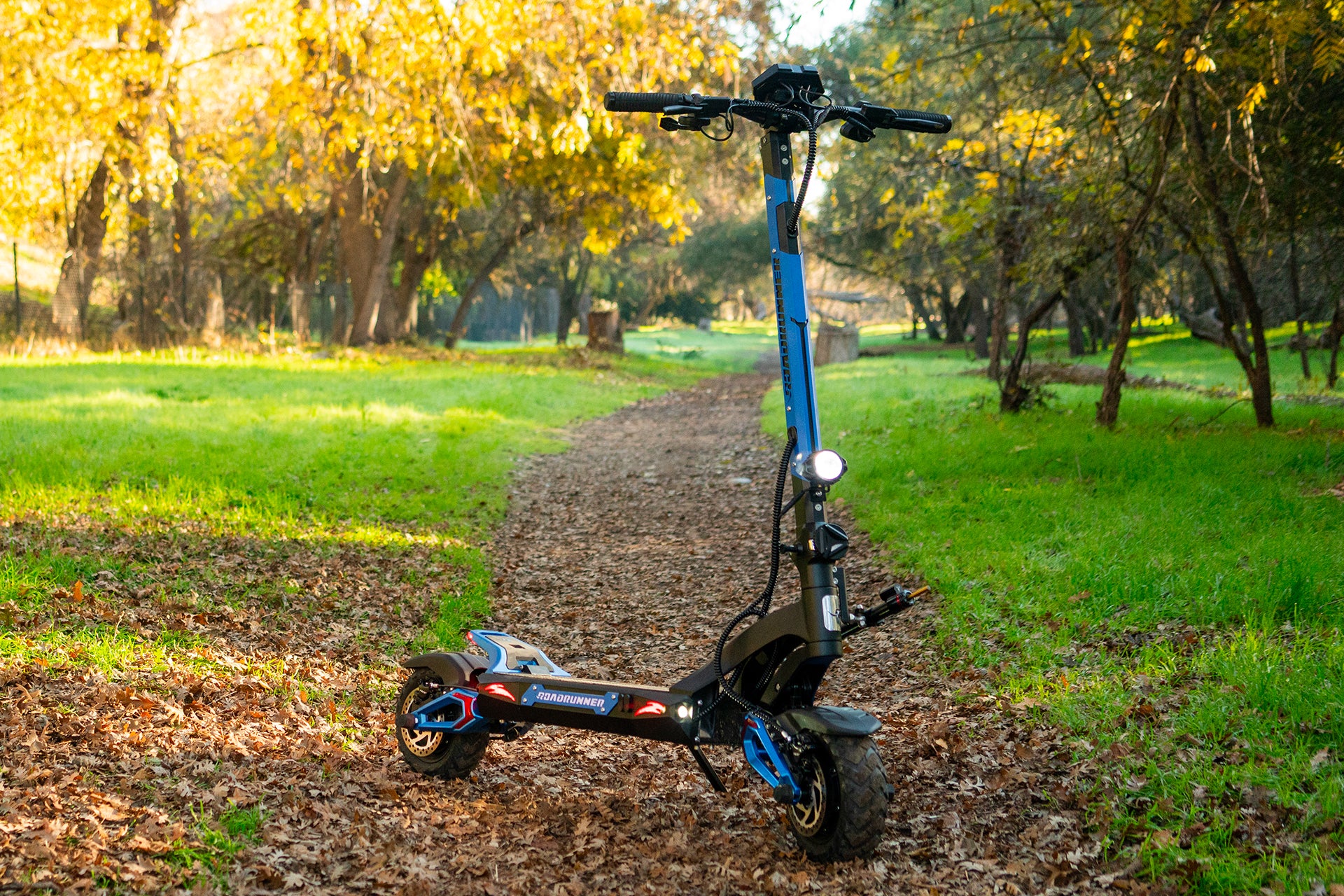 As the only US-owned electric scooter manufacturer, RoadRunner designs all scooters right here in the USA, ensuring unmatched craftsmanship and attention to detail. The RS5 MAX takes everything you love about the RS5 and turns it up a notch. Its sleeker body design is not just a visual delight but a testament to enhanced power and improved lighting. The innovative quick-connect system for every wire ensures maintenance is as effortless as your ride. Whether you're conquering off-road trails or gliding through urban streets, the robust 32 Ah LG removable battery offers an impressive range of up to 60 miles, ensuring your adventure never ends prematurely.