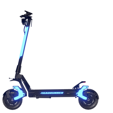 Experience the pinnacle of electric scooter performance with the RoadRunner RX7, proudly designed in the USA. Powered by a robust 3600W dual-motor system, the RX7 accelerates to a thrilling 70 mph while delivering an impressive range of up to 70 miles per charge. Its advanced 72V 40Ah Samsung battery, featuring premium 21700 cells, combines endurance with unmatched power. Glide through urban landscapes effortlessly on 11" PMT Italian Racing Tires and enjoy unparalleled stability with KKE Custom Dual Hydraulic Suspension. Prioritizing your safety, the RX7 is equipped with Magura MT5e Quad-Piston Hydraulic Brakes for exceptional control. Illuminate every journey with the RX7's exclusive electroluminescent paint, and ride with confidence knowing it boasts an IP67 waterproof rating. The RoadRunner RX7 isn't just a ride; it's an exhilarating experience.